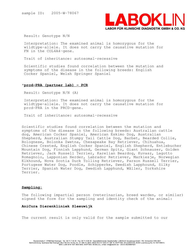 Gezondheidscertificaten Dane HeupdysplasieDownload Patella onderzoekDownload ECVODownload laboklin-1-1Download laboklin-2-1Download laboklin-3-1Download ED-certificaatDownload AON Normal/clear Embarkuitslag-HankDownload Dit delen: Klik om te delen op X (Opent in een nieuw venster) X Klik om te delen op Facebook (Opent in een nieuw venster) Facebook Vind-ik-leuk Aan het laden...